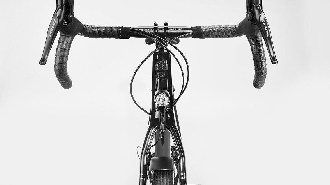 Das Nhoma basiert auf einem leichten Aluminiumrahmen mit komfort-dynamischer Geometrie und vielen Montagepunkten für Gepäck und Zubehör – sowohl am Rahmen als auch am neu entwickelten Clever Rack mit MIK-Kompatibilität und Standlichtfunktion. Geschaltet wird am Nhoma mit der gravelspezifischen Shimano GRX RX822 mit 1x12 Gängen. Mit Sattel und Lenkerband von Brooks sind die Kontaktpunkte zwischen Fahrer und Bike auf handwerklich höchstem Niveau, und der Scheinwerfer von Supernova leuchtet mit extrem starken 205 Lumen. Der Premiumseitenständer von Pletcher ermöglicht sogar das Abstellen des Bikes mit Beladung.