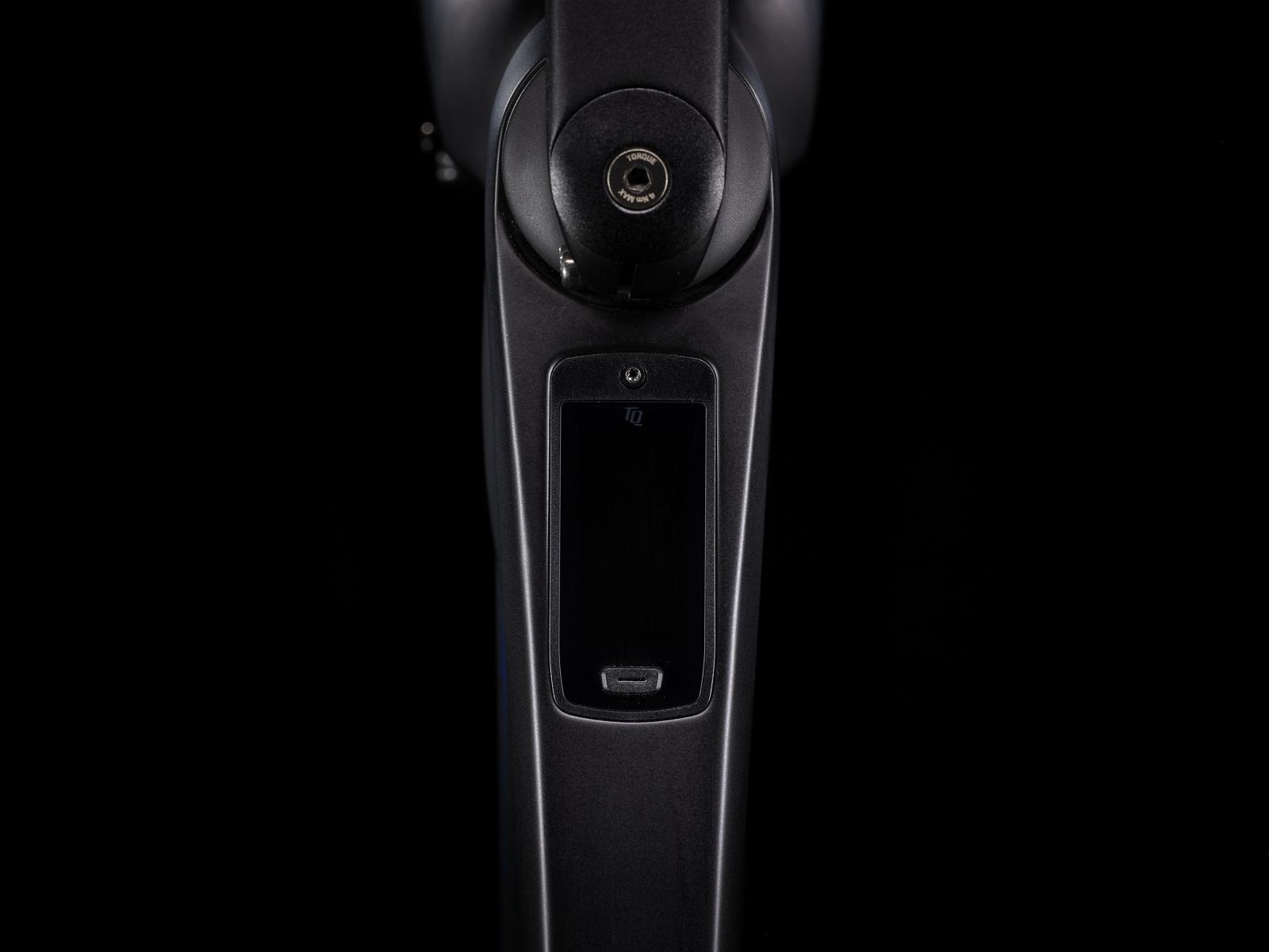Einen äußerst leichten Rahmen aus 800 Series OCLV Carbon mit hinterem IsoSpeed. Einen kraftvollen Harmonic Pinring-Motor von TQ mit einem Drehmoment von 50 Nm, der dich bis zu einer Geschwindigkeit von 25 km/h unterstützt, einen 360 Wh großen integrierten Akku, ein in den Rahmen integriertes, smartes LED-Display und diskret in die Bremsgriffgummis verbaute Bedienelemente für das Umschalten der Unterstützungsmodi. Aeolus Pro 37-Laufräder aus OCLV Carbon, eine drahtlose, elektronische Shimano 105 Di2 2x12-Schaltung, eine Carbonkurbelgarnitur, ein vibrationsdämpfender Bontrager Pro IsoCore-Lenker und ein RCS Pro-Vorbau mit vollstän