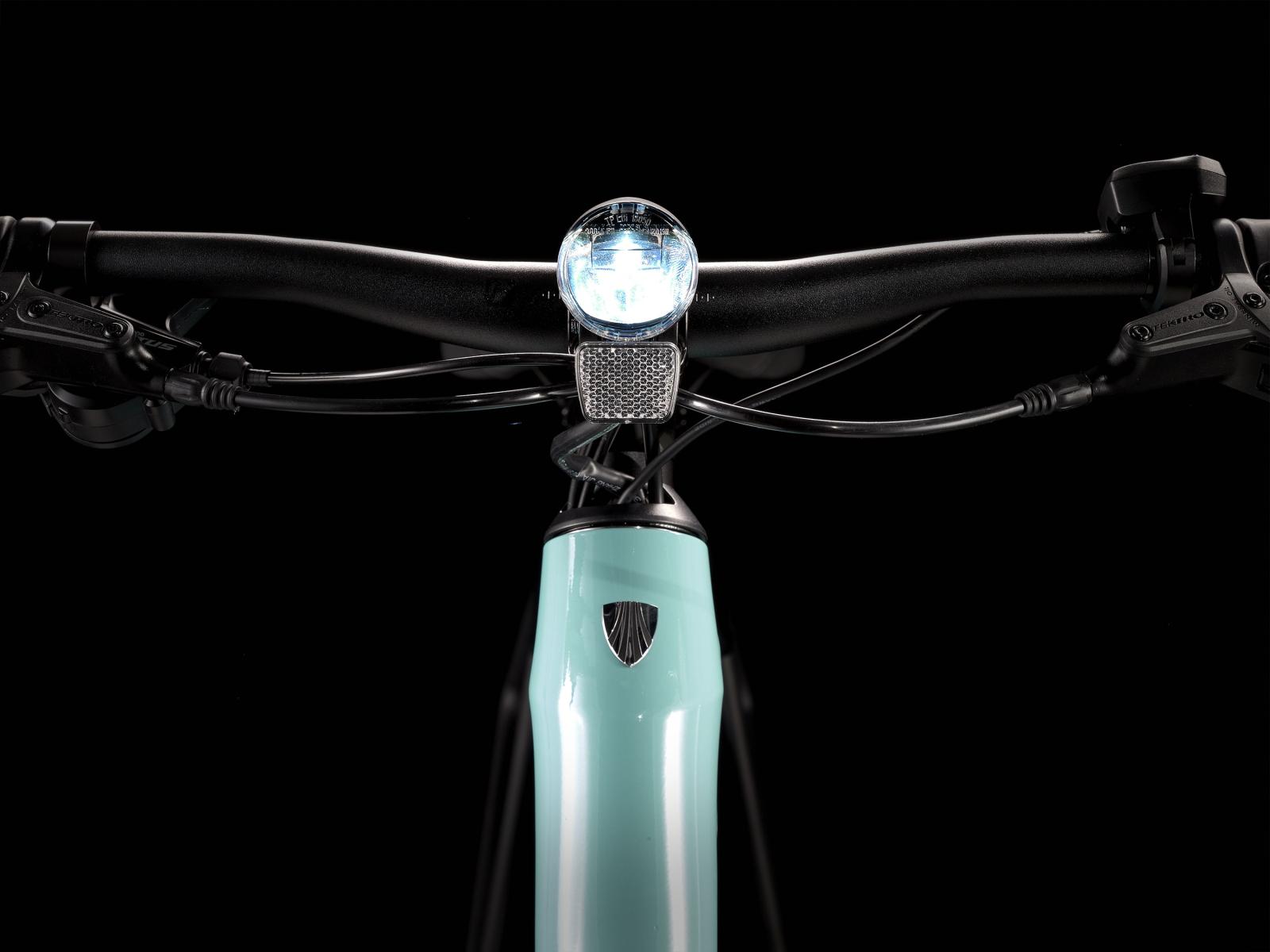 Einen leichten Aluminiumrahmen mit Stagger-Design zum einfachen Auf- und Absteigen, Treks hauseigenes Antriebssystem mit Nabenmotor mit 250 W Leistung und 40 Nm Drehmoment zur natürlichen Tretunterstützung bis 25 km/h und einen 250 Wh starken Akku für bis zu 56 km Reichweite pro Ladung. Außerdem bekommst du schnelle 700C-Laufräder und leicht rollende, aber fahrstabile 40C-Reifen mit reflektierenden Flanken, eine zuverlässige Shimano-Schaltung mit 9 Gängen, hydraulische Scheibenbremsen, eine integrierte, akkugespeiste Beleuchtung, einen MIK-kompatiblen Heckgepäckträger, Schutzbleche und einen Seitenständer.
