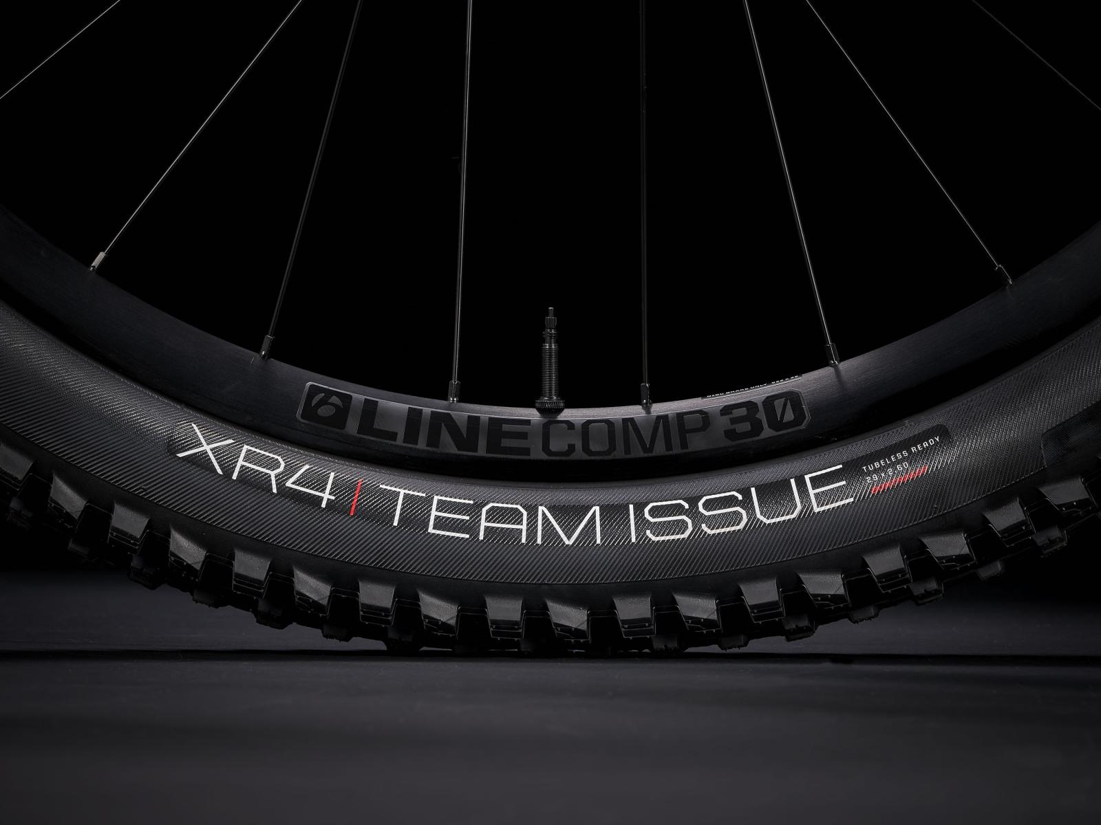 Reifen: Bontrager XR4 Team Issue, Tubeless Ready, Inner Strength Flankenschutz, Aramidwulstkern, 120 TPI, 27.5 x 2.60