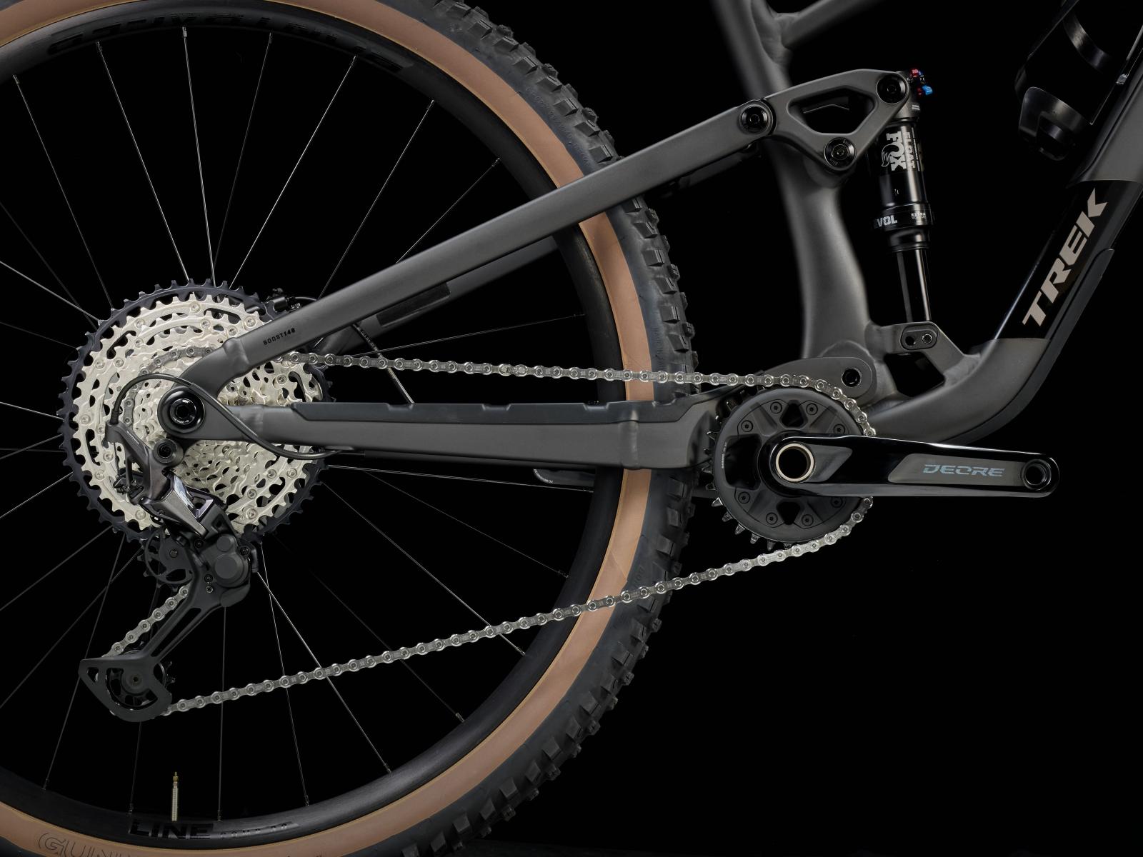 Einen Rahmen aus Alpha Platinum Aluminium mit vierfach verstellbarem Mino Link an der unteren Dämpferaufnahme zur Feinanpassung der Rahmengeometrie und des Hebelverhältnisses des Fahrwerks. Eine FOX Rhythm 34 Gabel mit 130 mm Federweg, Float EVOL Luftfeder und GRIP Dämpfung sowie einen FOX Performance Float Hinterbaudämpfer mit 120 mm Federweg und 3-Positionen-Dämpfung. Abgerundet wird die Ausstattung von einer Shimano XT/SLX 12fach-Schaltung, hydraulischen Scheibenbremsen, einer Bontrager Line Variostütze und Bontrager Line Comp 30 Tubeless-Ready-Laufrädern.